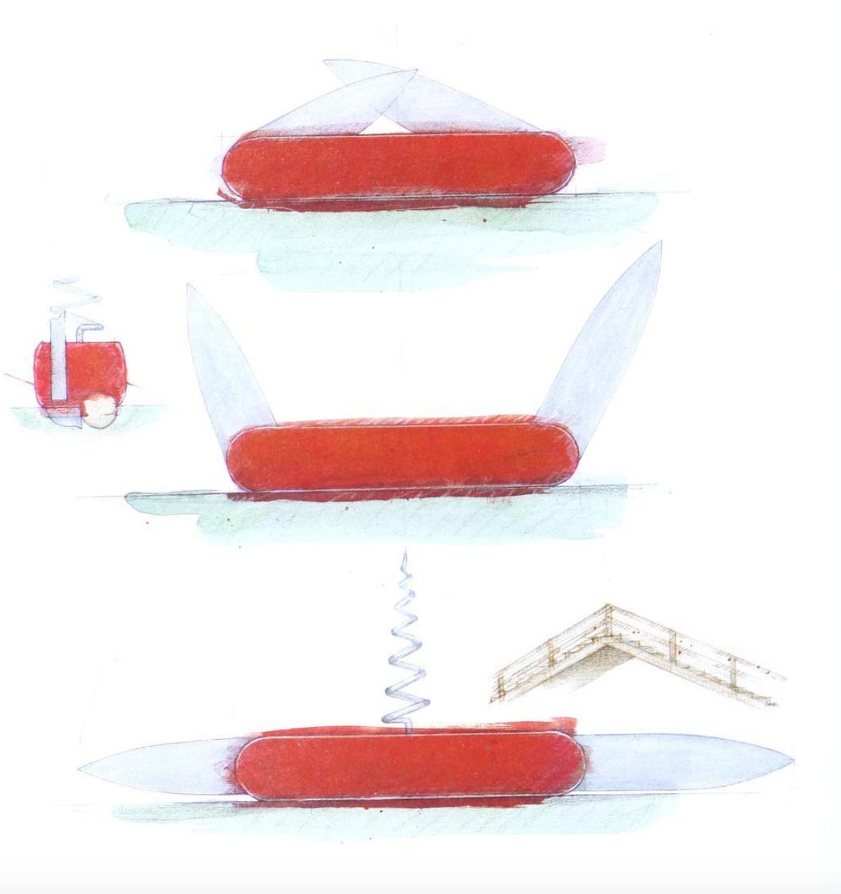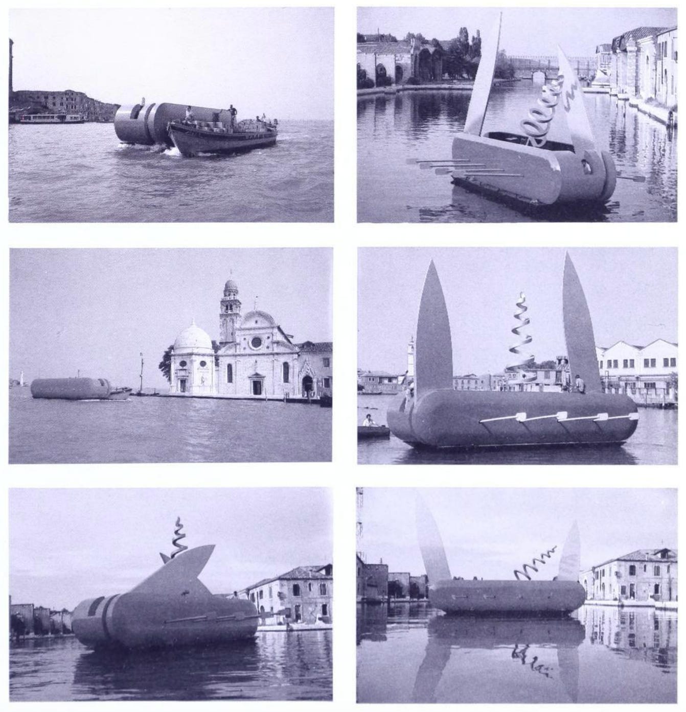 In September 1985, an incredibly surreal and by now mostly forgotten Il Corso del Coltello (The Course of the Knife) was staged three times at Venice’s Arsenale, an ancient shipyard which was still under the Italian Navy control. It was conceived under the provocation of critic Germano Celant and realised by Claes Oldenburg, Coosje van Bruggen, and Frank O. Gehry as an improbable collision of sculpture, theatre, and architecture. Its centrepiece was a monumental Knife Ship, a twenty-four meter long Swiss Army knife set afloat complete with opening blades and a corkscrew.